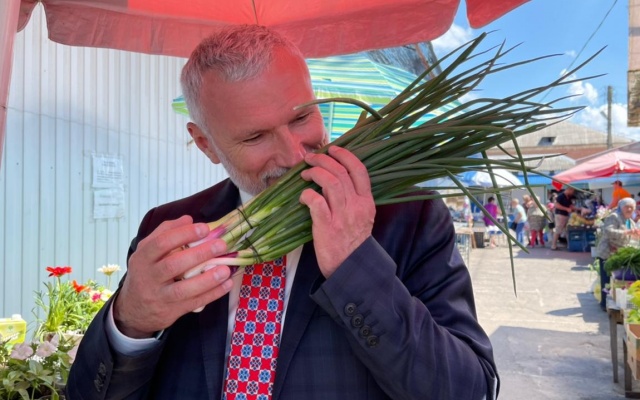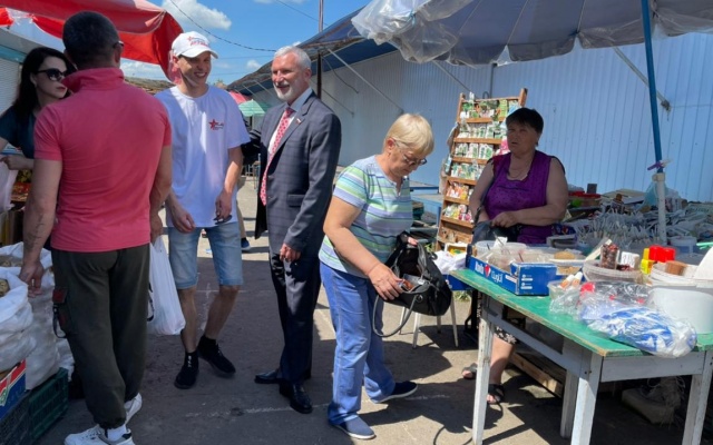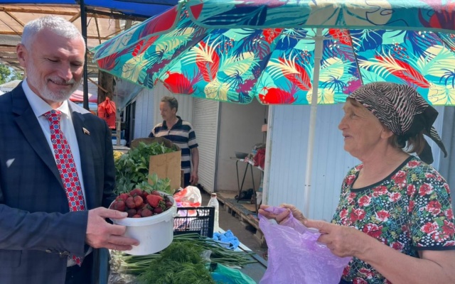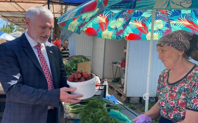 Визит начался с посещения города Обоянь. По традиции, политик зашел на местный рынок, поговорил с людьми. "Купил ароматнейший зеленый лук и клубники - угощу коллег!" – отметил Журавлев.