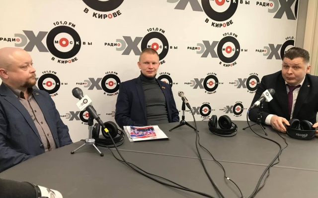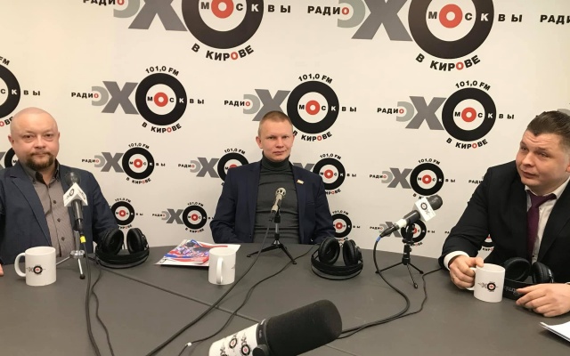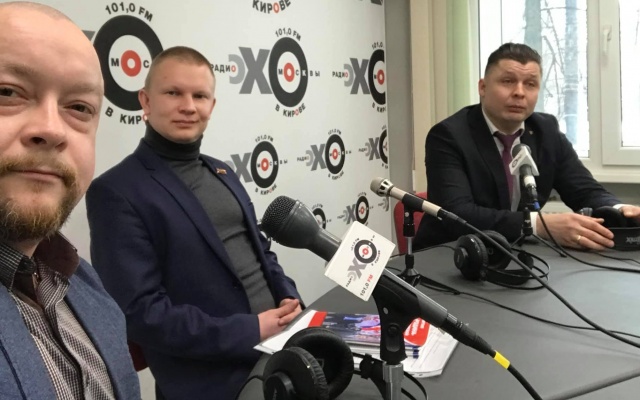 Рабочий визит в Кировскую область начался с участия в эфире радио "Эхо Москвы - Киров" вместе с лидером Кировской "РОДИНЫ" Федором Лугининым.