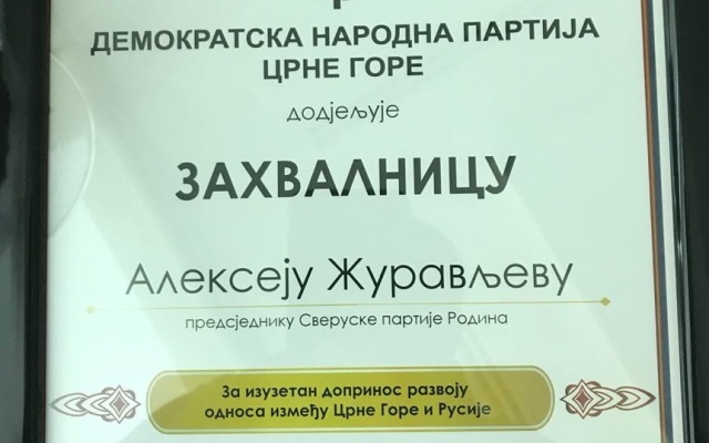 "По словам нашего черногорского друга, для них большое значение имело мое заявление в их поддержку, равно как приезд делегации партии "РОДИНА" в Черногорию", - написал Журавлев на своей странице в Facebook.
