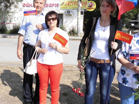 Хоть начало и было назначено на 9:45 люди стали подтягиваться к памятнику уже в начале десятого утра. Со взрослыми пришли и дети, которые были не только празднично одеты, но и принесли с собой цветы. И не какие-то, а алые гвоздики – Символ Великой Победы, которая так тяжело далась героям войны и стоила миллиона жизней наших предков. Многие держали в руках государственные знамёна, флаги и флажки партии «РОДИНА», на груди были приколоты георгиевские ленты. Проходил митинг под звуки песен военных и послевоенных лет.
