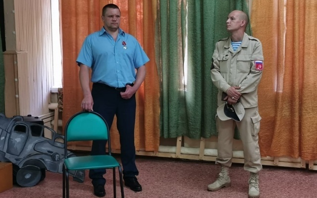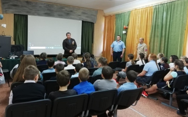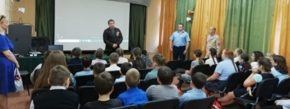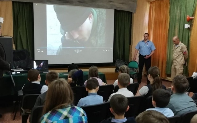 В качестве гостя на Урок мужества был приглашен ветеран чеченской войны Евгений Букин, награжденный Орденом мужества и полностью потерявший зрение в ходе боевых действий на Северном Кавказе. Ветеран рассказал детям о войне от первого лица, об участии в боевых действиях, о том, что пришлось пережить в годы войны и о своей жизни после нее. Дети были увлечены рассказами героя, задавали множество вопросов в ходе беседы, старались прочувствовать, каково это жить, будучи слепым.