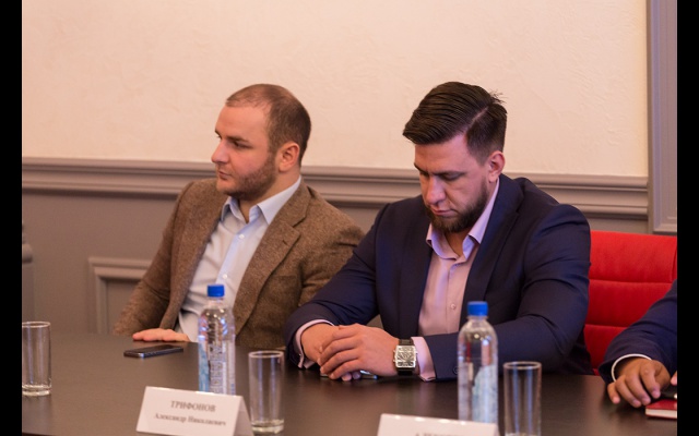 В конце заседания Фёдор Бирюков вручил Олегу Матвейчеву новый партийный значок "РОДИНЫ", выполненный с использованием кремлёвской звезды.