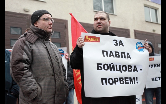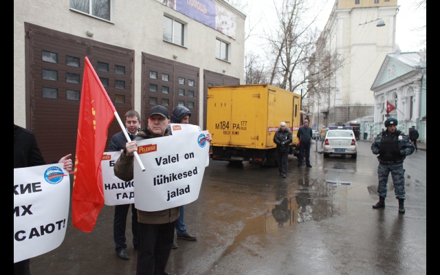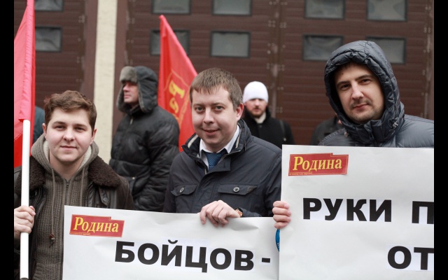4 апреля активисты партии "РОДИНА" и РУСИНТЕРНА, костяк которых составили столичные активисты, провели у здания представительства Эстонии в Москве пикет в поддержку Павла Бойцова. Собравшиеся возле "вражьего логова" гордо размахивали флагами с символикой партии "РОДИНА", держали в руках плакаты и выкрикивали лозунги: "За Павла Бойцова - порвём!", "Фашизм не пройдёт!", "Русские своих не бросают!", "Руки прочь от ветерана!", "Бойцов - герой! Нацисты - гады!", "Позор псам-нацистам!", "Шавки-нацисты, назад!", "Эстония, приди в себя!", "Русские идут!", "Россия! Родина! Победа!", "За наших Героев! За нашу Победу!".