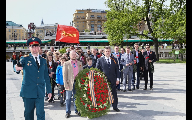 8 мая 2014 года, в канун праздника Великой Победы русского оружия, делегация соратников партии "РОДИНА" возложила венок и цветы к могиле Неизвестного солдата у Кремлёвской стены в Москве.