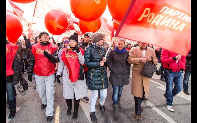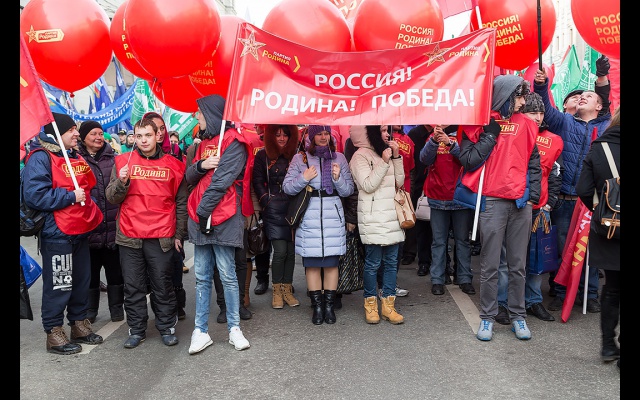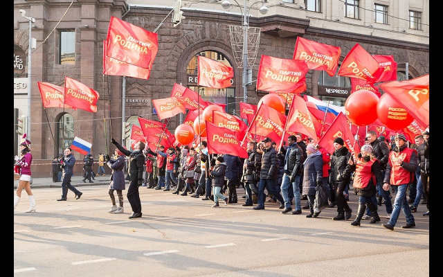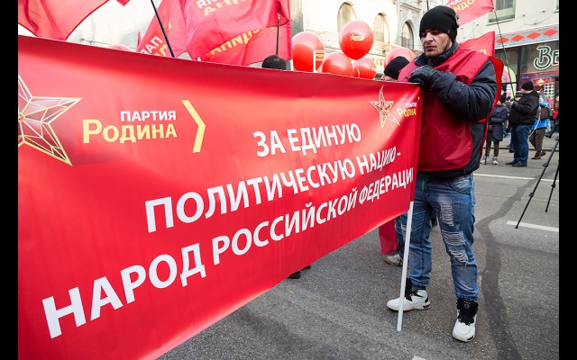 Партия "РОДИНА" прошла по центру столицы России под лозунгами "За единую политическую нацию – народ Российской Федерации" и "Россия! Родина! Победа!"