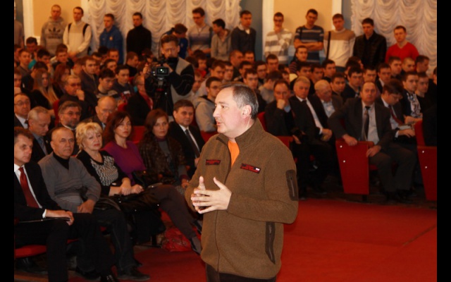 Утренняя встреча со студентами прошла в открытом и неформальном режиме. Дмитрий Рогозин рассказал о разрабатываемой модульной программе кораблестроения на 2020-2050 годы, а также о масштабной модернизации флота с 2015 года - России необходимы подводные ядерные лодки класса "Ясень".