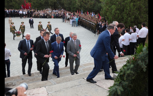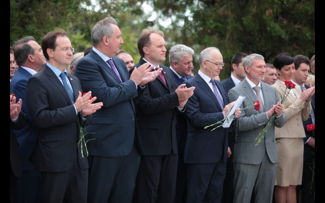 В свою очередь Дмитрий Рогозин передал приднестровцам поздравления от президента России Владимира Путина и зачитал приветственный адрес от руководителя Администрации президента России Сергея Иванова: "В этот день, в день 70-летия Ясско-Кишинёвской операции, победа, которая действительно вошла во все учебники, как одна из самых удачных, самых смелых, самых дерзких военных операции Советского Союза, в этот день я хочу сказать вам, дорогие мои приднестровцы, никогда не снимайте своей ноги с плиты, которую удерживает нацизм. Держите мир на своей земле, стойко отстаивайте его, помните каждую каплю крови, которая была пролита вашими дедами и бабушками для того, чтобы не пролить новую кровь. Слава Великой Победе и вечная память тем, кто заплатил своей жизнью за наши мирные дни".