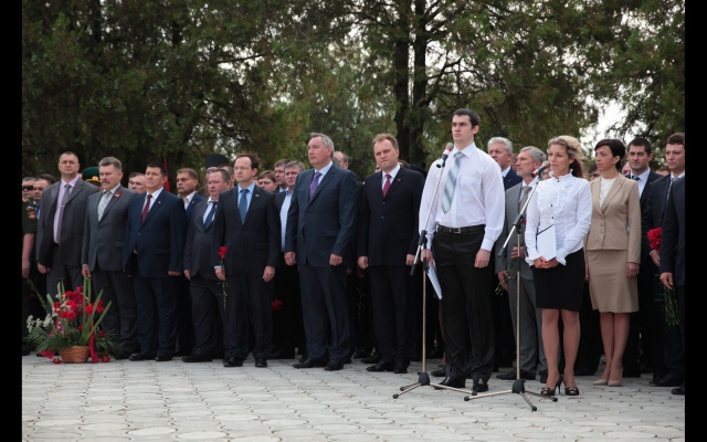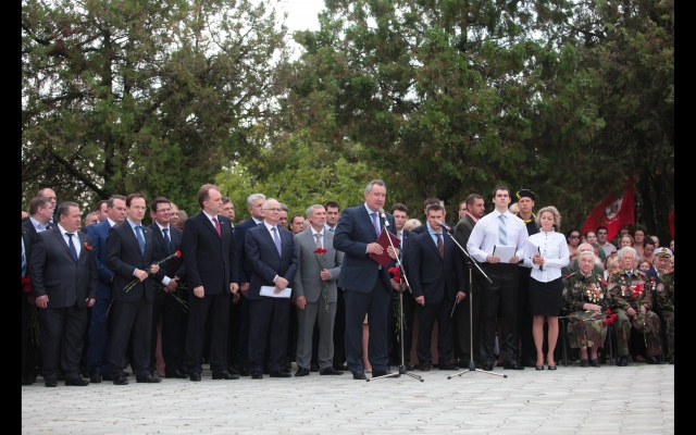 "Храните мир, помните о пролитой нашими предками крови, не допустите возрождения нацизма на вашей земле. Память о войне, пожалуй, единственное, что сдерживает новые угрозы миру", - сказал Рогозин.