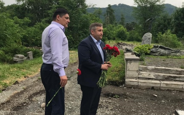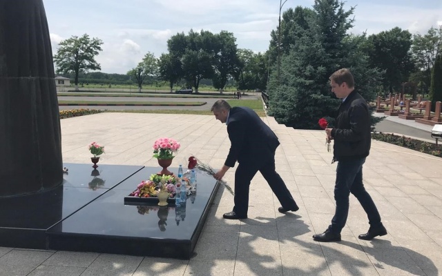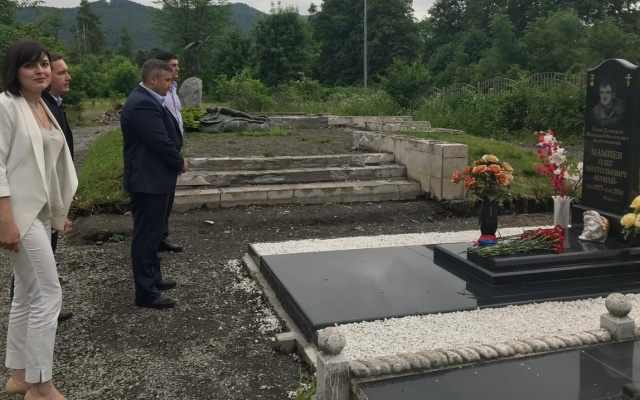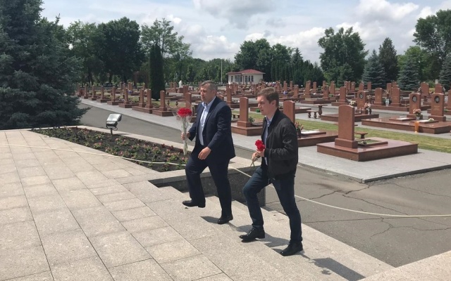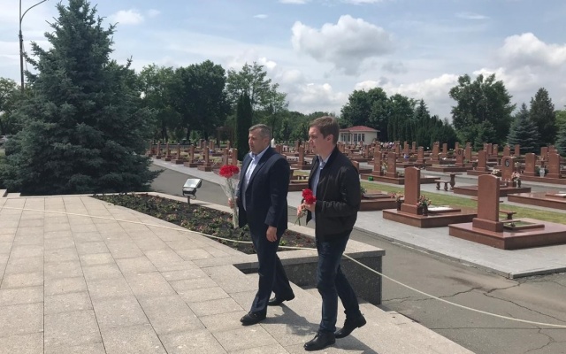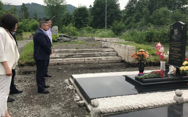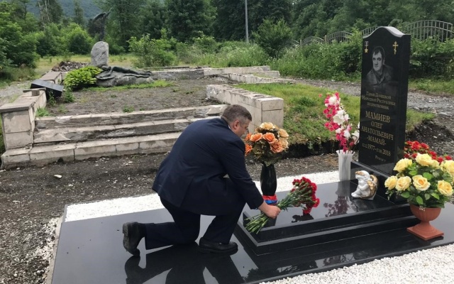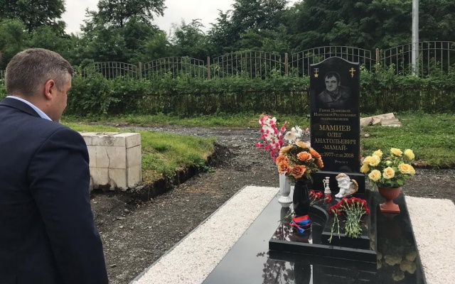 В заключение рабочего визита Алексей Рылеев и Владимир Кудашов возложили цветы к могиле знаменитого уроженца Северной Осетии, героя ДНР, командира батальона "Пятнашка" Олега Мамиева, известного под позывным "Мамай".
