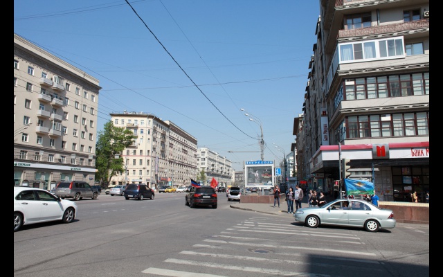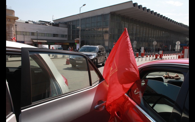 Автомобили с флагами проехали по внешней стороне Садового кольца, полностью замкнув его. Завершилась акция у станции метро "Курская", где автомобилистов встречали члены военно-патриотического клуба "Авангард".