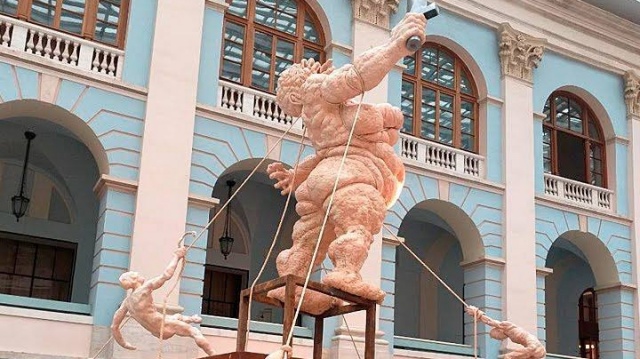 "В самом сердце Москвы, в Гостином дворе, выставлена вот эта чудовищная пародия на скульптуру "Родина-Мать". Ее автор, родившийся в Киеве "человек-собака" Олег Кулик, не нашел ничего более оригинального, чем изобразить в таком неприглядном виде память о победе нашего народа в Сталинградской битве", - заявил в своем телеграм-канале председатель партии "РОДИНА", депутат Госдумы Алексей Журавлев.