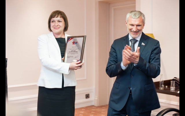 Журавлев вручил новым соратникам партии "РОДИНА" наградные плакетки и выразил уверенность, что они помогут партии добиться победы на парламентских выборах 18 сентября и сформировать фракцию в Госдуме.