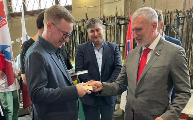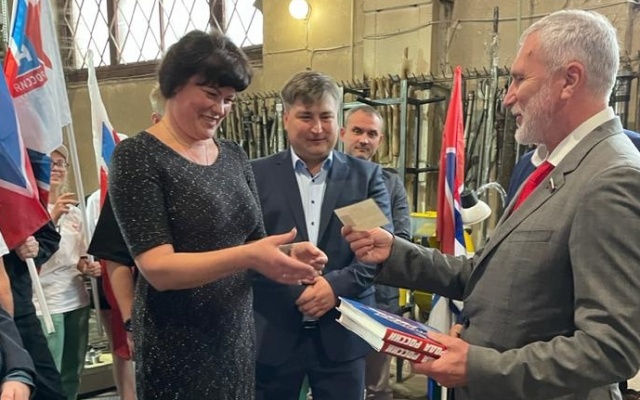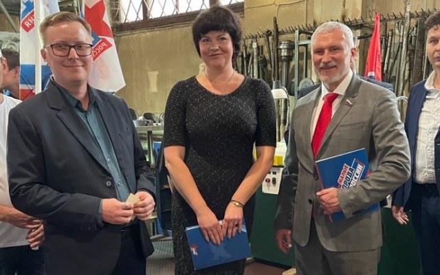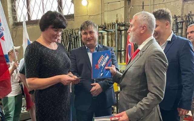 Тут же, на заводе, прошло торжественное вручение удостоверений кандидатам от партии "РОДИНА".