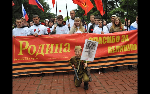 9 мая актив Крымского отделения Всероссийской партии "РОДИНА" провел в Симферополе праздничную акцию, в которой приняли участие более двухсот партийцев со всех уголков Крыма, в том числе и представители Севастопольского регионального отделения.