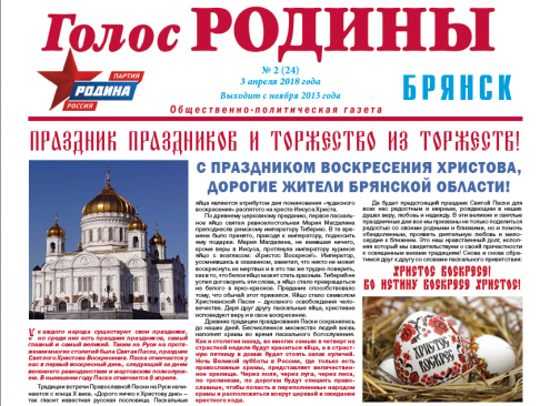 Свежий выпуск газеты брянской "РОДИНЫ" можно читать по ссылке Голос "РОДИНЫ" №2 (24).