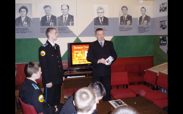 Затем будущие защитники Отечества посмотрели кадры кинохроники об истории и значении великой битвы.