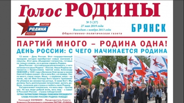 Свежий выпуск газеты можно читать по ссылке "Голос РОДИНЫ. Брянск" №5 (37).