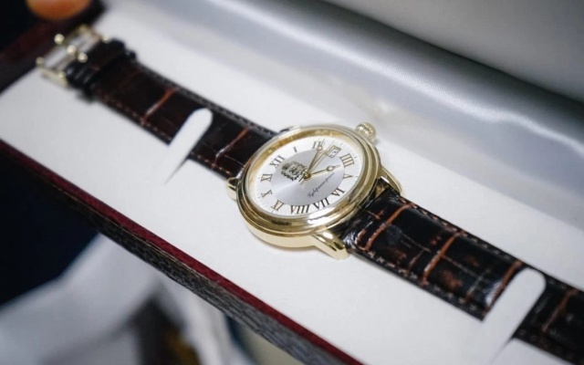 Традиции награждать памятными подарками много лет. Хорошо, что сейчас она вновь возрождается. Часы сделаны на заводе «Полет-Хронос», циферблат украшает Герб Подмосковья.