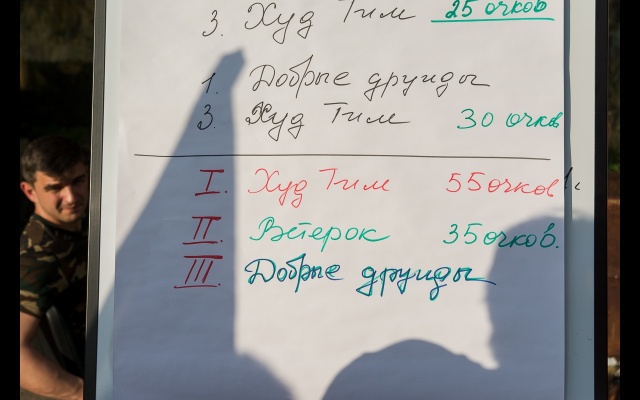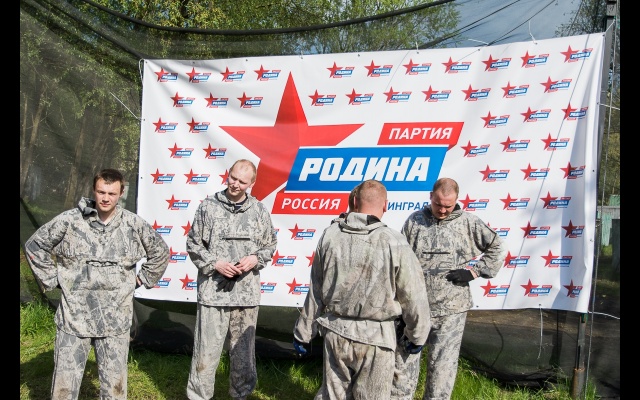 Команды по пять человек сначала боролись за флаг партии "РОДИНА". Команда-победитель стала обладателем кубка "Защитник Родины".