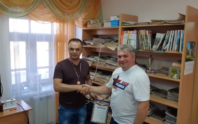Александр Губарев, кандидат в депутаты Ярославской областной думы от партии "РОДИНА" поздравил жителей поселка с праздником, вручил награды шахматистам, футболистам и волейболистам.