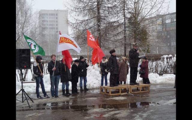 Руководитель фракции "РОДИНА" в городской Думе Коряжмы Алексей Гурьев зачитал открытое обращение лидера партии Алексея Журавлёва к народам России и Украины. Митингующие бурно приветствовали обращение одобряющими выкриками и аплодисментами.