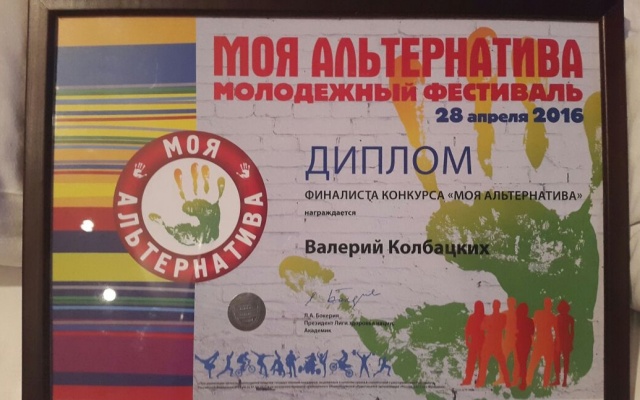 Первое место на Всероссийском молодежном Интернет-конкурсе "Моя альтернатива", проходившем в рамках форума "Здоровье нации", получил проект Валерия Колбацких из города Железногорска Красноярского края