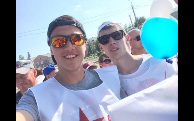 В центре площади, в палатке "Родина" задорные активисты раздавали шары цветов триколора. Жители города всех возрастов, получив разноцветные шары, с удовольствием выстраивались в колонну. Под дружное скандирование "Россия! Родина! Я!" жители запустили триколор в безоблачное небо.