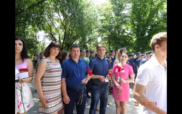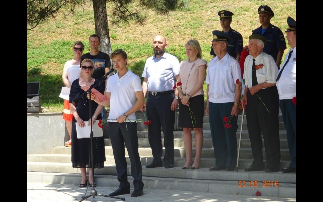 Л.С.Шмойлова рассказала ребятам о том, что сегодня по всей стране в больших городах и малых поселках чтут память погибших в годы Великой Отечественной войны. В этот день 75 лет назад на рассвете без объявления войны гитлеровская Германия напала на Советский Союз. Это была самая страшная и кровопролитная война в истории страны. 22 июня… Этот день вечно будет отбрасывать нашу память к 1941 году. А значит, и к 9 мая 1945 года. Между двумя датами – прочная нить. Она связала воедино годы ужаса, лишения и тяжелого труда. Ушли на фронт и погибли на полях сражений 8300 новочеркассцев. В годы оккупации были расстреляны 1670 горожан.