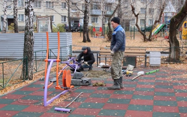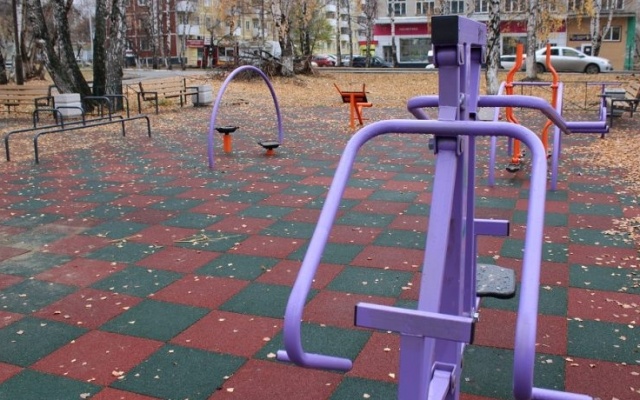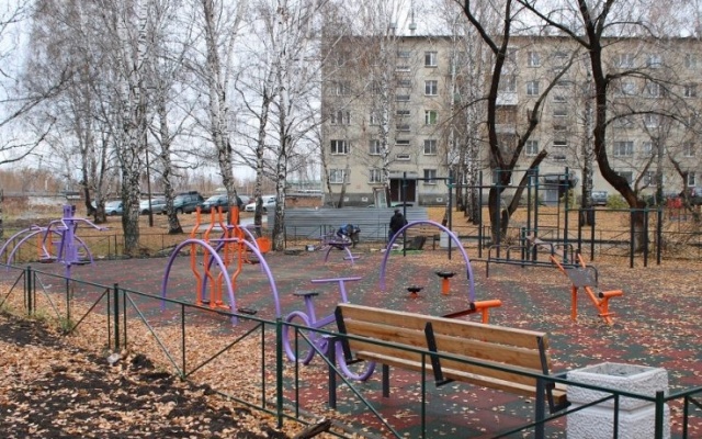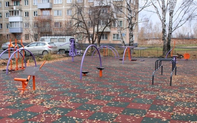 Теперь рядом с детской игровой площадкой у ребят здесь есть место для занятий физкультурой и спортом, развития двигательной активности. Площадка имеет покрытие из резиновой крошки и оборудована самыми разнообразными уличными тренажерами – что называется, на любой вкус.