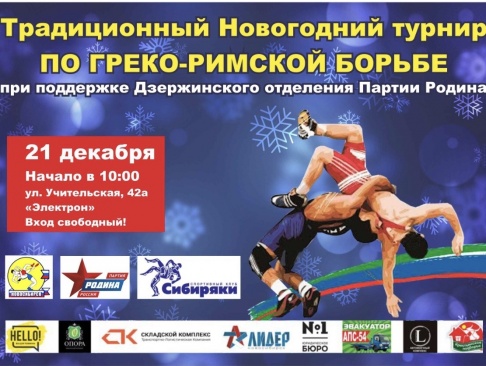 21 декабря в Центре спортивной подготовки "Энергия" состоится традиционный новогодний турнир по греко-римской борьбе, его генеральным спонсором является Дзержинское отделение партии "РОДИНА".