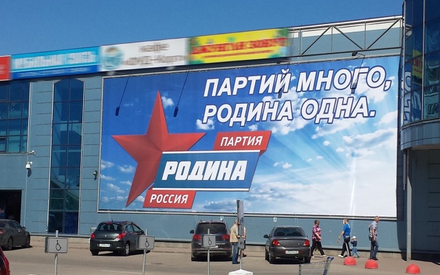 На гипермаркете "ИМПЕРИАЛ" в рамках партнерского соглашения размещен самый большой в Псковской области баннер партии "РОДИНА".