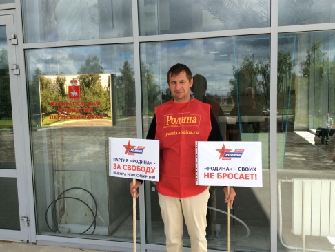На плакатах выражена принципиальная позиция партии – "Родина своих не бросает" и в знак солидарности с новосибирскими партийцами - "Партия "РОДИНА" - за свободу выборов новосибирцев".