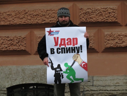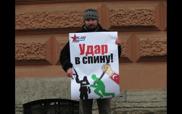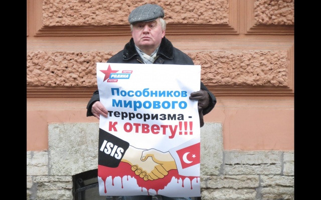 Сегодня, 25 ноября 2015 года, региональное отделение партии "РОДИНА" в Санкт-Петербурге провело серию одиночных пикетов у консульства Турции. Таким образом, социал-патриоты выразили своё возмущение по поводу действий Анкары в отношении России.