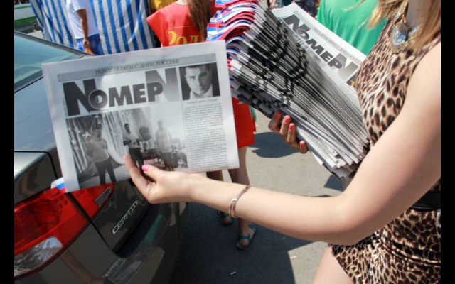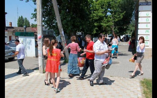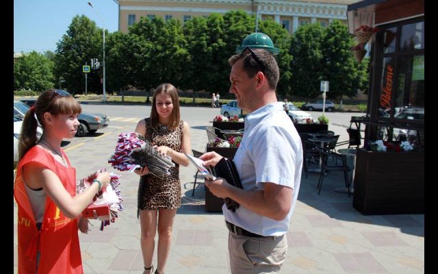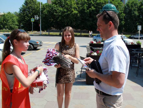 Соратники раздавали горожанам патриотические ленты и партийную газету