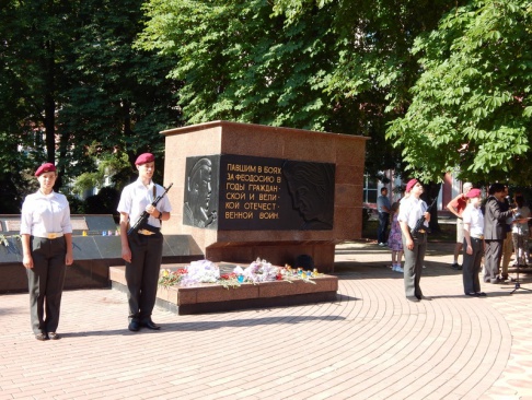 В 9:30 двое мальчиков и две девочки, желающие вступить в детское военно-патриотическое объединение, созданное по инициативе феодосийских членов партии "РОДИНА" Олега Вигурского и Геннадия Вилкула, заступили на Пост № 1 у Вечного огня. Организаторы акции со знамёнами партии в руках возложили к мемориалу цветы.