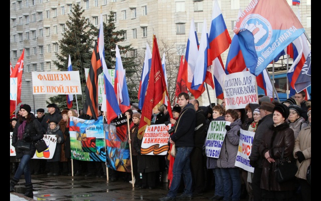 10 марта 2014 года на митинг в поддержку народа Крыма в Архангельске, по разным оценкам, пришли от двух до четырёх тысяч человек. Партия "РОДИНА" подняла около полутора десятков флагов, в общей же сложности на митинге присутствовали около трёх десятков сторонников партии.