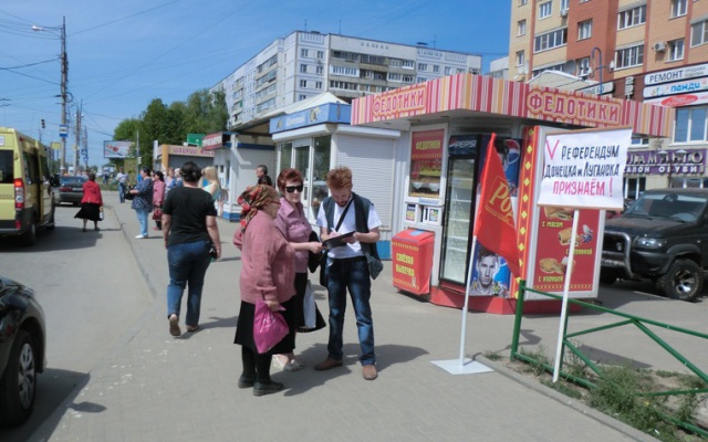 16 мая 2014 года в микрорайоне Дашково-Песочня города Рязани прошёл информационный пикет в поддержку жителей Новороссии, которые борются с фашистской хунтой.