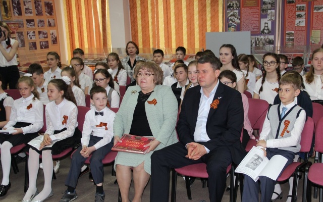 В исполнении старшеклассников прозвучали военно-патриотические песни и стихи, а ученики младших и средних классов провели эстафетную экскурсию по школьному музею.