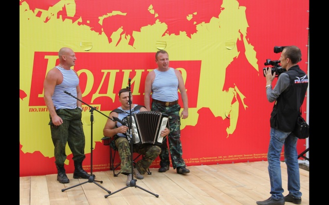 Полевой агитационный лагерь самарских социал-патриотов был признан лучшим на слёте. Участники фестиваля приходили сюда на импровизированные экскурсии порой целыми делегациями: знакомились с разнообразной наглядной агитацией, музицировали на сцене "РОДИНА", за чаем из самовара расспрашивали о работе партии, фотографировались с оружием и предметами военного быта, представленными в лагере.