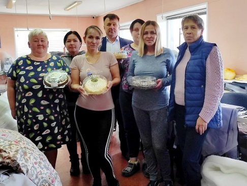 В благодарность Виталий Прохоров передал вкусные подарки и лично отметил коллектив швейного цеха за помощь.