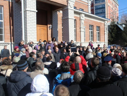 По инициативе настоятеля храма Трех Святителей, протоиерея Николая Косых 16 марта состоялся народный сход православных верующих против застройки прилегающей к храму территории развлекательными заведениями.