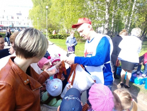 Во время акции каждый желающий смог бесплатно получить георгиевскую ленточку.