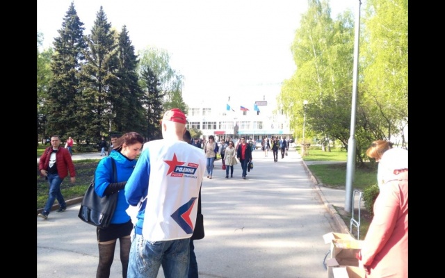 "День Победы – это светлый, радостный праздник, но вместе с тем и скорбный для нашего Отечества. Черно-оранжевые георгиевские ленточки являются символом памяти, уважения и благодарности поколению победителей, символом памяти павших и выживших. Чёрный и оранжевый цвета означают " «дым и пламень". Эти два цвета в нашей стране считаются главным символом воинской доблести и чести", - отметил один из активистов "РОДИНЫ".