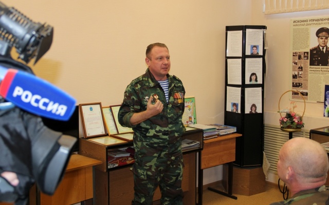 "Мы все выпускники Рязанского высшего воздушно-десантного командного училища, которому за заслуги в подготовке офицерских кадров Распоряжением Правительства РФ № 245 от 17 февраля 2018 года было присвоено почетное наименование "гвардейское". В послужном списке училища – 53 Героя Советского Союза, 82 Героя Российской Федерации, тысячи кавалеров боевых орденов. История нашего училища тесно связана с этой землей, с этим школьным музеем, экспонаты которого хранят память о первых выпускниках парашютно-десантного училища, героических офицерах ВДВ. Поэтому мы с особым чувством ответственности проводим здесь уроки мужества, чтобы воспитать у ребят патриотические убеждения, сформировать активную гражданскую позицию, подготовить к армейской службе и, возможно, выбору военной профессии", - рассказал в телевизионном интервью член Политсовета партии "РОДИНА", член Регионального Штаба ОНФ в Самарской области, доверенное лицо кандидата на должность Президента Российской Федерации В.В. Путина по Самарской области Вадим Нуждин.