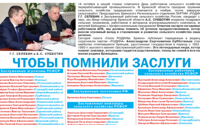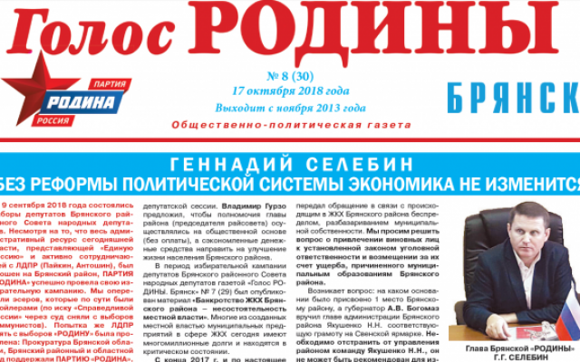 15-тысячным тиражом в полноцветном варианте вышел очередной октябрьский выпуск газеты "Голос РОДИНЫ. Брянск" №8 (30).